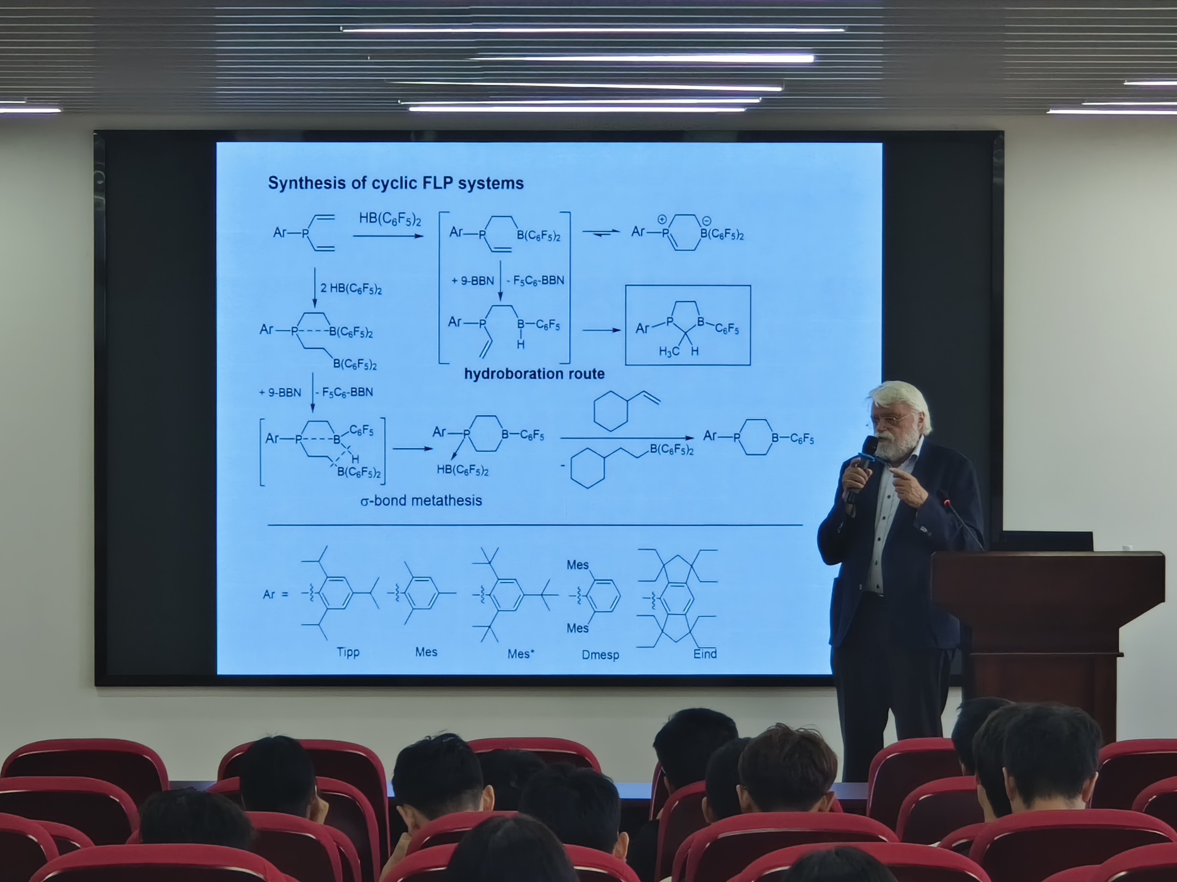 2025年9月5日,德国明斯特大学Gerhard Erker教授应邀做客“名家讲堂”并作了“Boranes and Frustrated Lewis Pairs: Searching for New Reactions”学术报告。