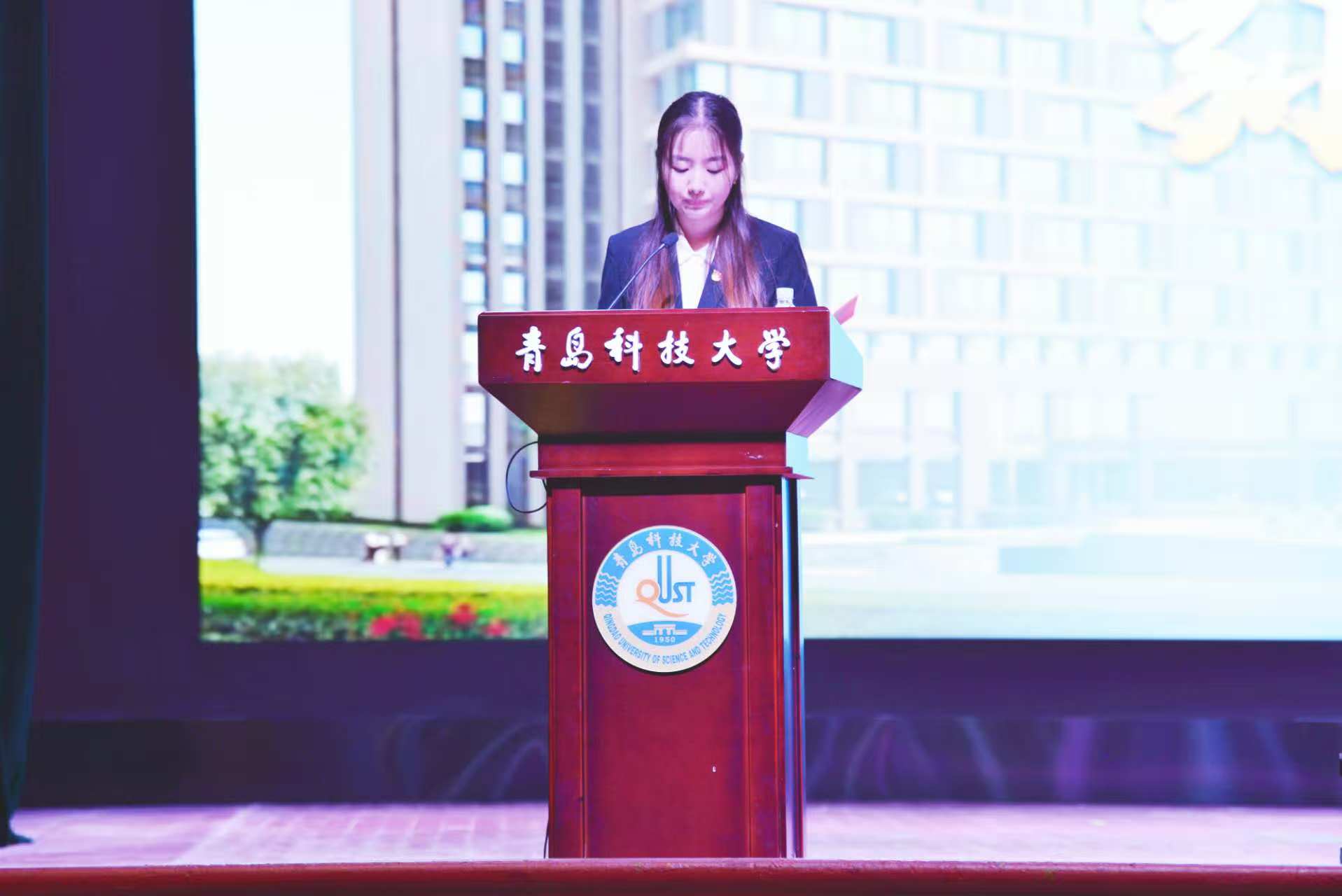 在校生代表、制药工程222班孙雨萱同学分享了自己的学习体会,鼓励学弟学妹以积极心态迎接大学生活,坚持梦想、不懈奋斗,书写无悔青春。