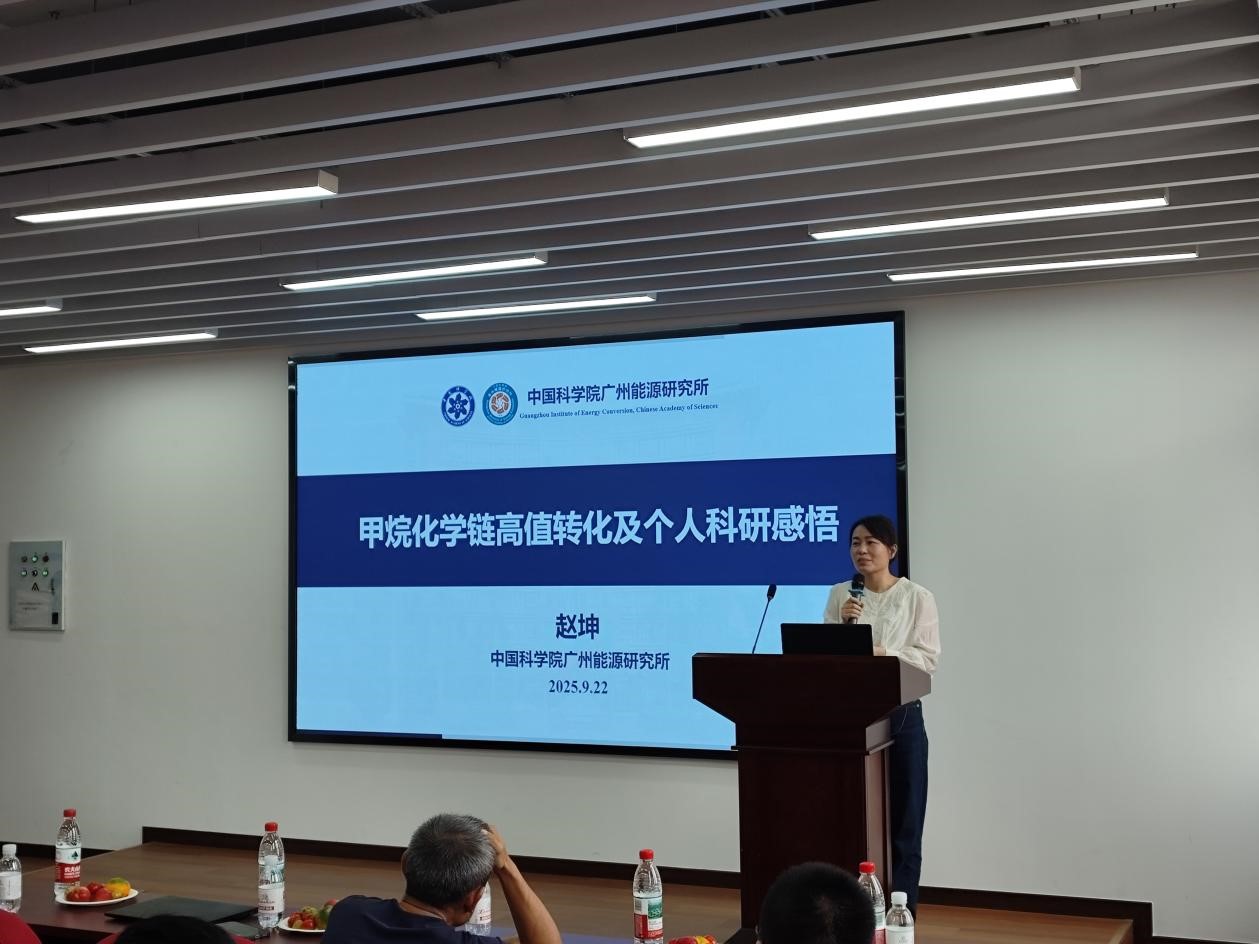 中国科学院广州能源研究所研究员、博士生导师赵坤围绕《甲烷化学链高值转化及个人科研感悟》进行报告;赵研究员是中国科学院特聘研究骨干,在甲烷活化与化学链合成气制备方面具有深厚积累。她系统介绍了甲烷温和条件下定向转化为高值化学品的最新进展,并分享从基础研究到应用探索的宝贵经验。