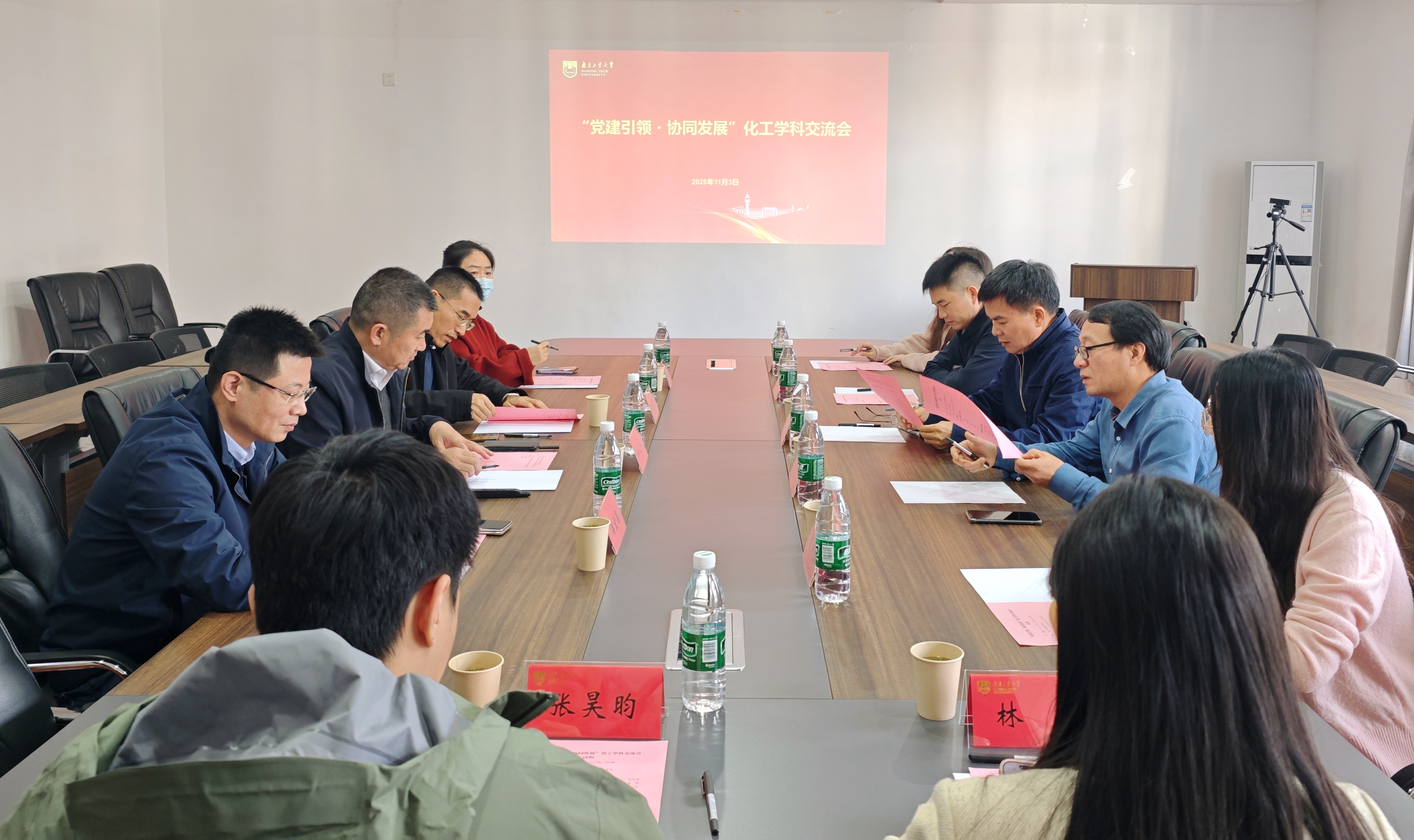 为积极推进党建工作创新,以高质量党建引领学科发展,进一步深化高校间化工学科交流合作,11月3日,bbin连环夺宝官网党委副书记兼副院长贾建闯带队赴南京工业大学bbin连环夺宝官网,共同参与“党建引领・协同发展”化工学科交流会。南工大bbin连环夺宝官网党委书记鞠永干、党委副书记季青春、副院长潘宜昌,广东工业大学轻工bbin连环夺宝官网党委书记周东斌、党委副书记杨刚等共同出席会议,三方围绕学科发展与党建融合展开深入对话。