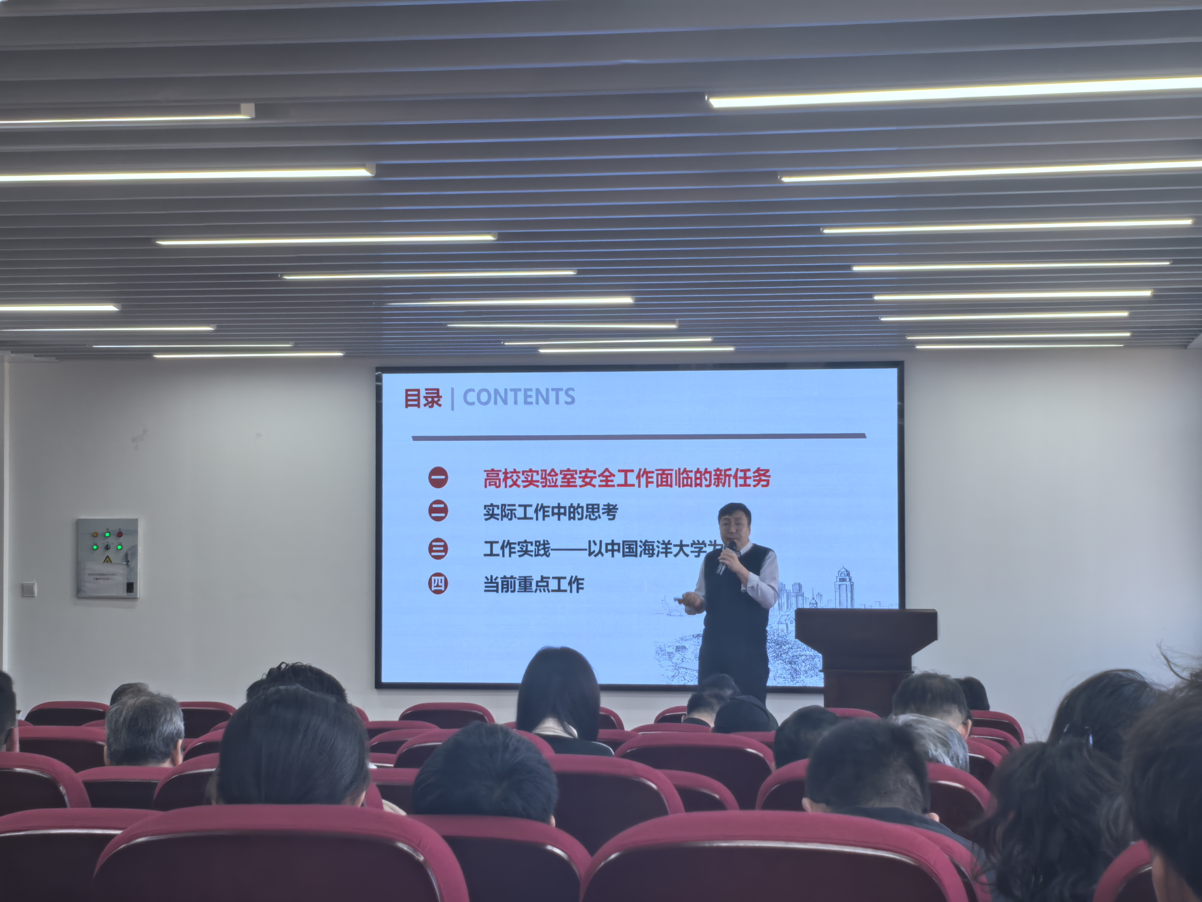 活动特邀中国海洋大学国有资产与实验室管理处高级实验师李恒老师作专题报告。李老师结合多年实验室安全管理经验,以典型案例为切入点,深入剖析了高校实验室常见安全隐患,系统讲解了危险源辨识、个人防护要点及火灾、泄漏等突发事件的应急处置流程。报告中,他特别强调“安全无小事”,呼吁师生将安全规范内化为日常习惯:“每一份实验数据的背后,都必须以安全为基石。”