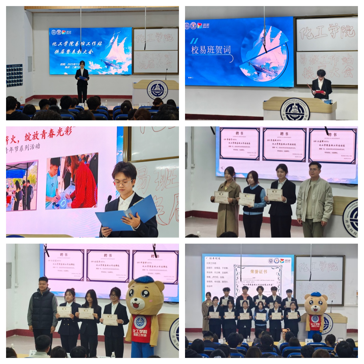 11月4日下午,bbin连环夺宝官网易班工作站2024-2025年度换届暨表彰大会于第二教学楼101室顺利召开。学院团委副书记兼学工办副主任柳晓阳,bbin连环夺宝官网易班工作站指导老师赵建滕,校易班代表,环境学院、生物工程学院易班代表,以及bbin连环夺宝官网易班工作站全体成员参加本次会议。