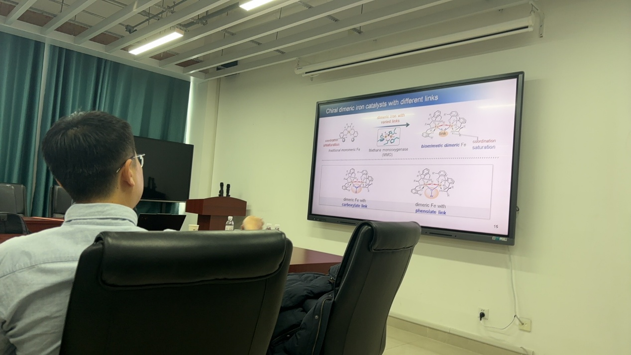刘磊教授首先介绍了仿生不对称氧化及其药物化学领域的科学意义,以及笼状仿生不对称氧化及其药物化学领域的研究背景,并展开讲解了当今行业中仿生不对称氧化领域面临的挑战。会上,刘教授发展新型不对称氧化反应特别是惰性底物和易毒化催化剂底物的不对称氧化是合成化学领域最具挑战的难题之一,存在反应效率低与选择性控制难题,而仿生不对称氧化技术则有望解决难题,为手性药物的高效、绿色合成提供新的途径。最后,刘教授针对仿生不对称氧化领域所遇到的困难与在场师生互相交流、互相探讨,并鼓励同学们深入研究仿生不对称氧化。