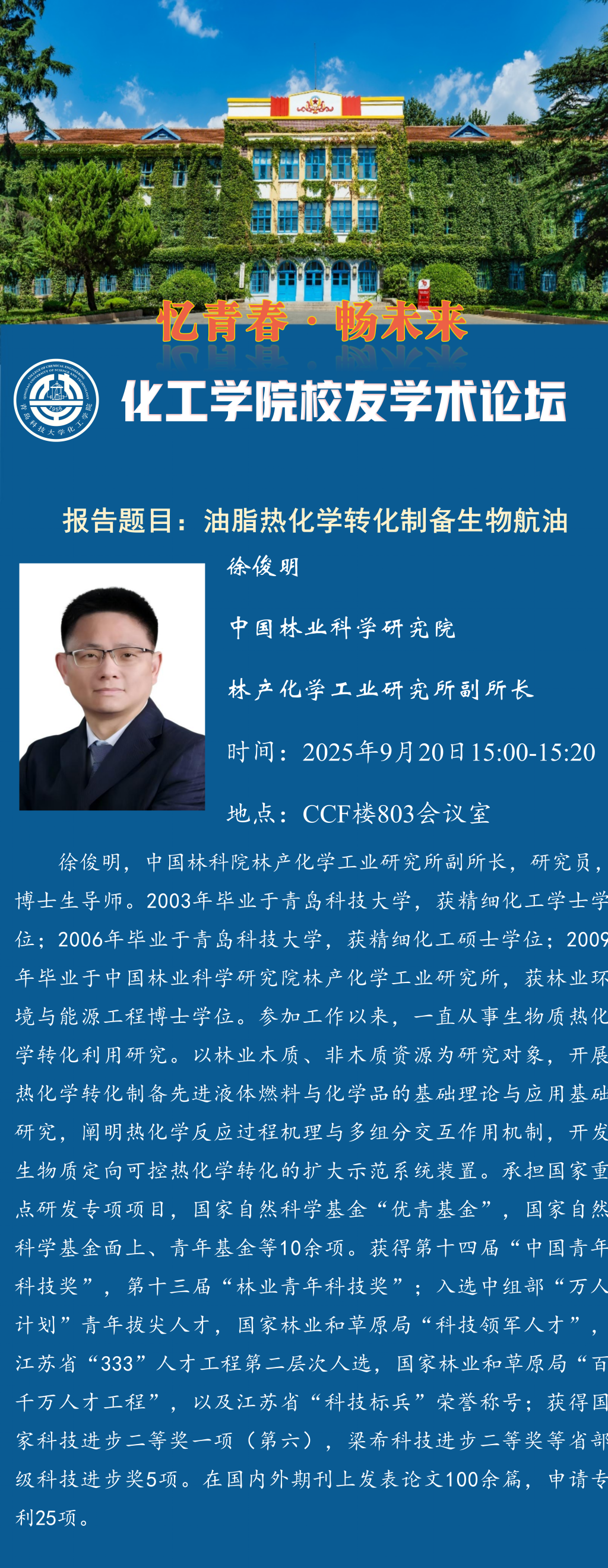 bbin连环夺宝官网校友学术论坛——徐俊明:油脂热化学转化制备生物航油