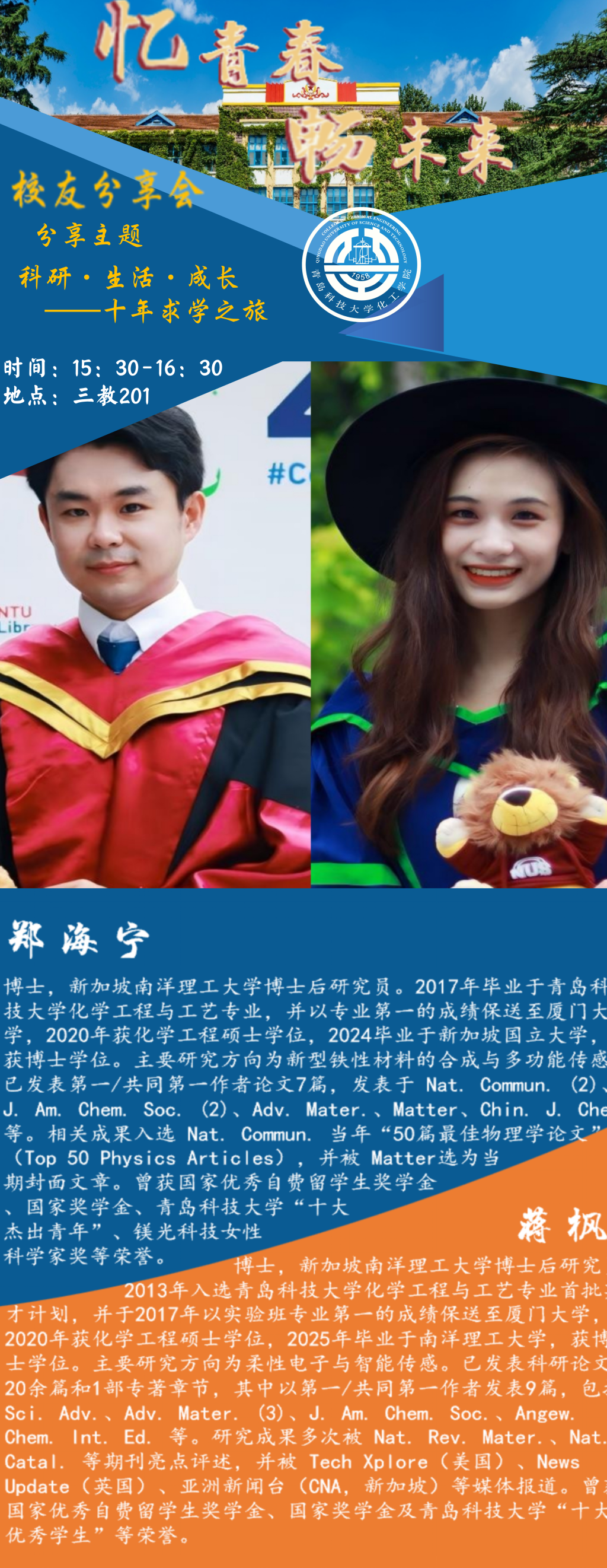 上一条:bbin连环夺宝官网校友海外论坛——郑军:青科大起航,慕尼黑逐梦:化工学子的博士留学之路 下一条:bbin连环夺宝官网校友海外论坛——谷志勇:Chemical Engineering Considerations of Advanced Materials Synthesis and Applications