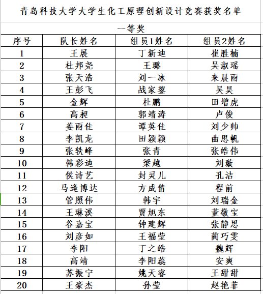 bbin连环夺宝官网大学生化工原理创新设计竞赛获奖名单
