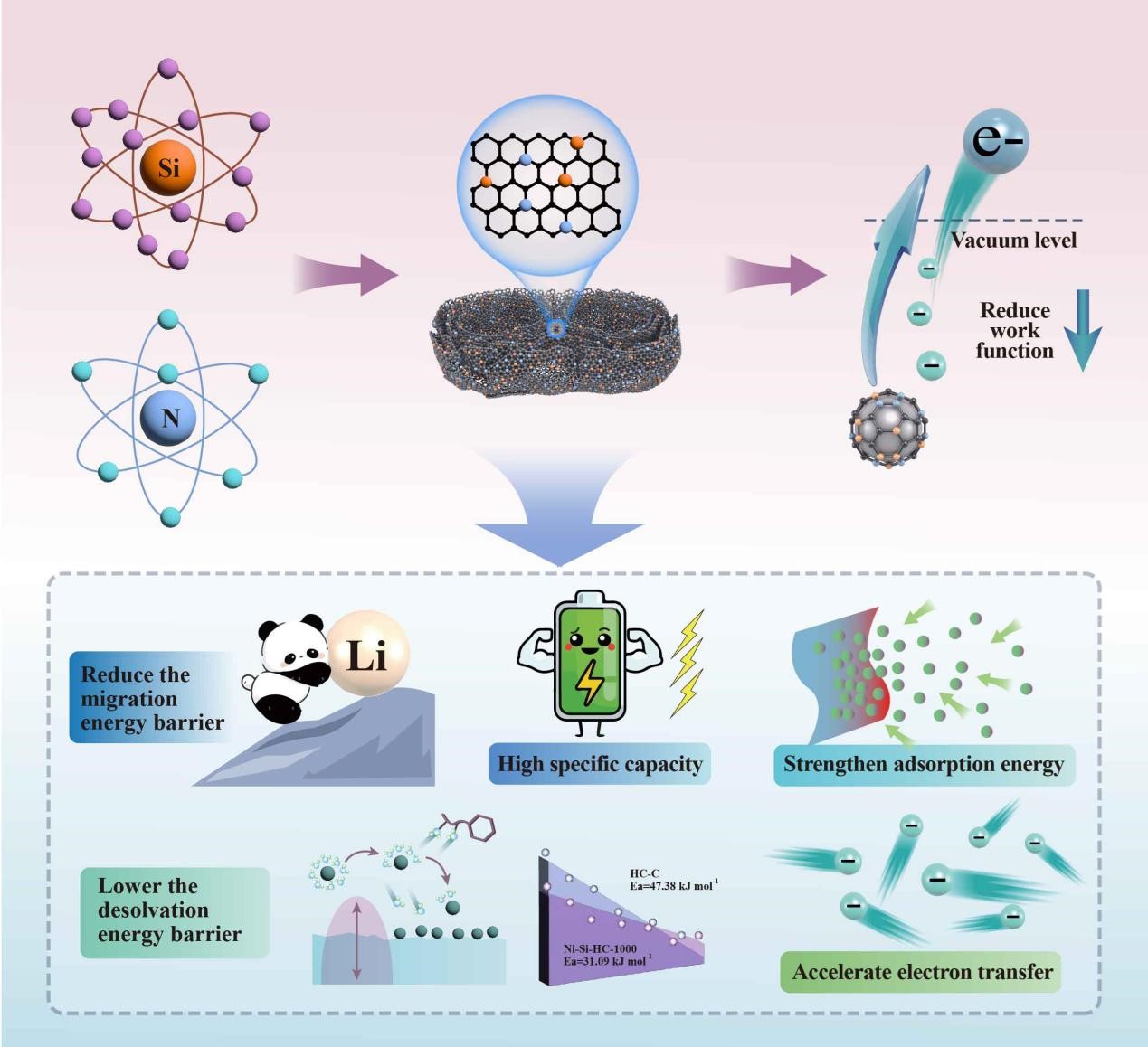 近日,bbin连环夺宝官网朱晓东/木天胜团队在《Advanced Functional Materials》期刊上发表了题为“Tailored Work Function by N, Si Co-Doping Enables High-Performance Hard Carbon Anode for Lithium-lon Batteries”的研究论文(中科院一区,影响因子:19)。bbin连环夺宝官网研究生宋佳瑶为论文第一作者,朱晓东教授、木天胜副教授为论文共同通讯作者。