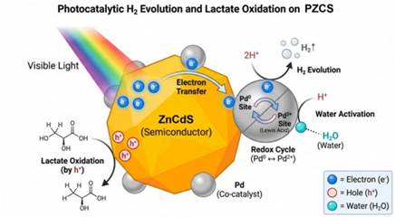 PZCS上光催化产氢与乳酸氧化过程示意图