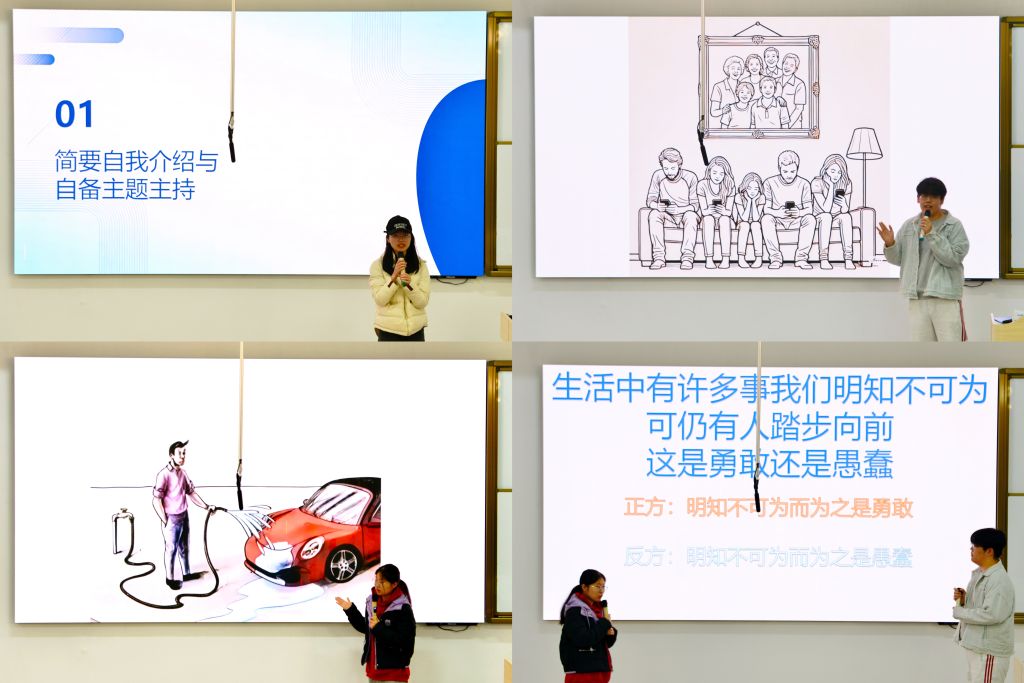 本次比赛设置三项考核流程,全面考量选手综合能力。第一项为简要自我介绍与自备主题主持,每人限时2分钟,选手自选主持场景自备稿件展示,突出个人特色与主持优势;第二项为识图解说,选手现场抽图,经短时间准备后即兴解说,考察临场观察力与语言组织能力;第三项为主题辩论,选手两两分组随机抽题,简短立论与对辩,检验逻辑思辨与临场表达能力。一系列科学的考核环节,既全方位考察了选手的专业素养,也为选拔优秀主持人才提供了客观公正的评判依据,同时也让参赛学生在赛事中锻炼了主持、即兴表达与逻辑思辨能力,为校园主持人才储备和培养筑牢实践基础。