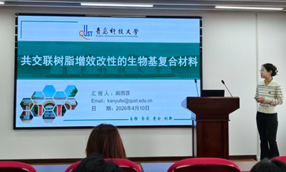 4月10日,bbin连环夺宝官网团委“求思得”论坛在CCF楼814学术报告厅成功举办。本次论坛特邀我校师资博士后阚雨菲老师作题为“共交联树脂增效改性的生物基复合材料”的专题学术报告,百余名研究生到场聆听交流。